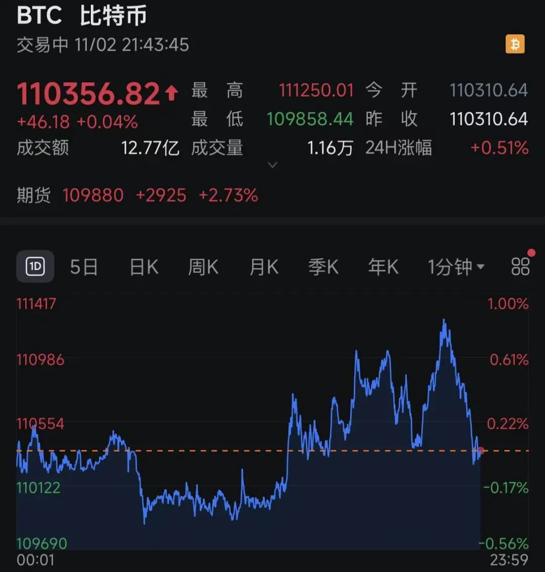晚间,比特币突然震荡加剧,截至发稿比特币微涨,盘中一度跌破110000美元。不过,以太坊、狗狗币等加密货币纷纷下跌。