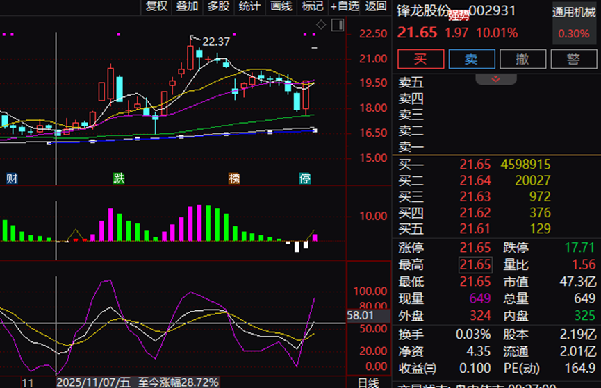 FXTM富拓官网:优必选拟入主,锋龙股份一字涨停,开盘封单量两倍于流通盘